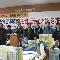 이병하 민주노동당 경남도당 위원장은 민주노동당은 중앙당 압수 수색에서부터 사무총장까지 체포영장이 발급되어 있는 상태라고 말하고 이것은 선거를 하지 말라는 것이라고 비난했다. 그는 또, 경남도당에는 4월24일 수색영장이 발부된 상태라고 전했다.