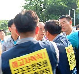 구조조정 썸네일형 리스트형 대림비앤코 노동자들이 알몸이 된 이유 대림비앤코(B&Co) 사측이 농성중인 천막을 기습적으로 철거하려다 노동자들의 격렬한 저항으로 뜻을 이루지 못했다. 이날 노동조합 간부를 비롯한 해고노동자들은 알몸으로 맞서 천막농성장을 지켜냈다. 대림비앤코는 지난 4월7일 타일사업부의 적자경영을 이유로 구조조정을 발표하면서 노동조합과 마찰을 빚고 있다. 이 회사는 조합원 10명에 대해 정리해고를 단행한 후 2차 해고를 예고하고 있다. 하지만 일방적인 해고를 단행해 경제위기에 편승한 부당해고라는 지적을 받고 있다. 회사의 기습적인 천막철거... 알몸으로 저항 노조쪽에 따르면 회사는 8일 오전 8시40분경 관리직 사원 30여명을 동원해 기습적으로 천막철거를 강행했다. 당시 천막농성장에는 해고노동자 4명이 천막을 지키고 있었다. 회사쪽의 움직임을 감지한 노동조.. 더보기 이전 1 다음