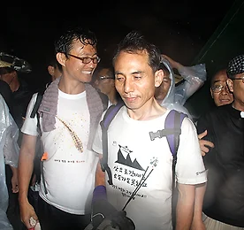 함안보 농성 썸네일형 리스트형 함안보 농성, 시민단체 설득 끝에 내려와 4대강 공사현장인 함안보에서 20일 동안 크레인을 점거하고 농성중이던 이환문, 최수영씨가 20일 시민사회단체의 간곡한 요구에 농성을 철회했다. 이날 시민사회단체는 두 활동가가 대정부 3대 요구안을 제시하면서 태풍에도 불구하고 농성을 계속하겠다는 의사를 밝힌 후, 기자회견을 통해 ‘살아서 같이 싸우자’며 농성해산을 호소했다. 단체대표들은 기자 회견 후 함안보 점거농성 현장인 임시가물막이까지 접근해 태풍으로 안전이 우려된다며 내려올 것을 설득했다. 먼저 변영철 부산환경운동연합 고문변호사가 크레인 중간지점에 까지 올라 두 활동가들을 면담한 후, 두 활동가들은 단체 대표들의 간곡한 요구에 응했다. 억수같은 비가 쏟아지는 가운데 크레인에서 먼저 내려온 최수영 부산환경운동연합 사무처장은 현장에서 가진 기자회견을 통.. 더보기 4대강 점거농성, 보궐선거 후 강제진압 우려 7.28 국회의원 재보궐 선거가 끝난 이후 4대강 반대 점거농성이 진행되고 있는 함안보와 이포보에 대한 공권력 투입에 대한 우려가 제기되고 있다. 강병기 경남도 정무부지사는 28일 낙동강 함안보 농성장을 방문한 자리에서 사견임을 전제하고 “보궐선거가 끝나면 정부차원의 대응이 있을 수 있다”며 “농성자들과 대화를 해서 풀어나가야 한다”고 말했다. 그는 “통상 선거가 끝나면 정부가 액션을 취해왔다”며 “이번 선거가 끝나면 상황을 지켜보던 정부가 행동에 나설 가능성이 있다”고 말했다. 또, 정부의 행동이 강제진압을 의미 하는냐는 질문에 대해 사견임을 강조하며 우려를 나타냈다. 강병기 정무부지사는 이날 함안보를 찾은 자리에서 “보직에 따른 일정이 있어 오지 못하고 있다가 오늘에서야 왔다”며 “크레인에 올라 가 .. 더보기 이전 1 다음