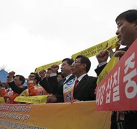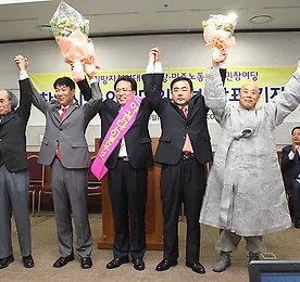 경남지역 6.2 지방선거 범야권 예비후보들이 16일부터 4대강사업 중단을 요구하는 1인시위에 들어간다. 경남 범야권 예비후보들은 15일 창원시 용호동 낙동강유역환경청 앞에서 가진 기자회견을 통해 “법과 제도를 무시하고 민주주의를 짓밟고 개발이라는 가면을 쓴 채 독재를 부활시킨 이명박 정부의 4대강 사업을 반대 한다”고 밝혔다. 4대강사업 반대 1인시위에는 민주노동당 강병기, 무소속 김두관 경남도지사후보를 비롯해 박종훈 경남도교육감 예비후보, 그리고 김맹곤, 김한주, 문성현, 문희우, 이세종, 정영두, 하정우, 허성무, 허용복 후보 등 9명의 기초단체장 후보가 참여한다. 또, 김경숙, 김해연, 명희진, 문경희, 반민규, 석영철, 손석형, 송미량, 여영국, 이천기, 이태문, 정막선, 정일 등 13명의 광역의..
